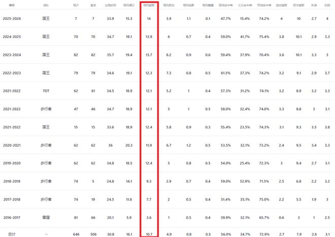 然而本赛季萨博尼斯的进攻状态却断崖式下滑,至今场均15.3分14板3.9助1.1断,三项命中率47.7%、15.4%和74.2%,投篮命中率自新秀赛季(39.9%)以来的新低,于是他在国王正逐渐失去了进攻核心的角色,同时因打不出应有价值就如上所述面临被甩卖的风险。