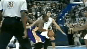 今天要说的是科比生涯最疯狂的一次盖帽,如下图: